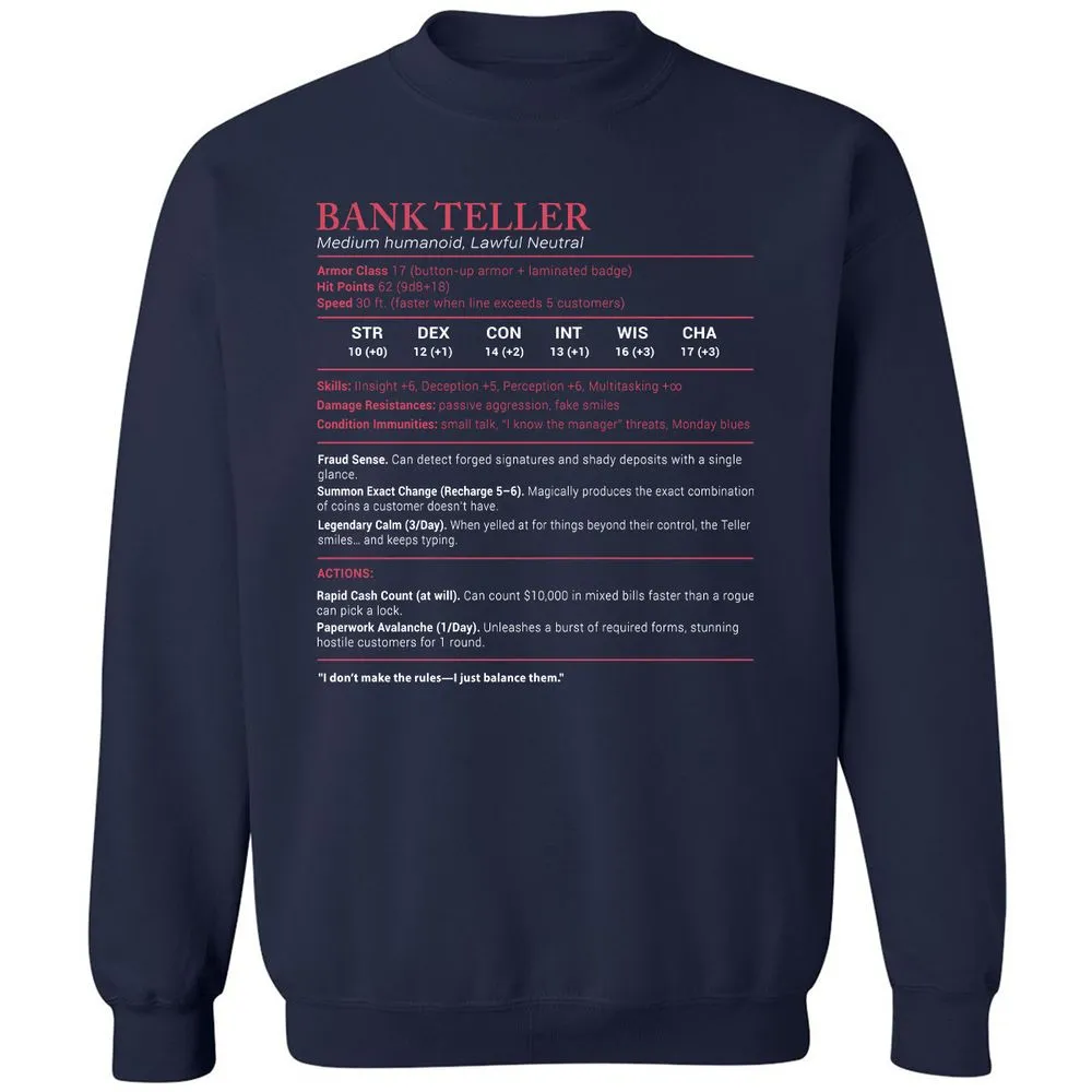 Bank Teller Stats Classic Unisex Sweatshirt - Black - 1