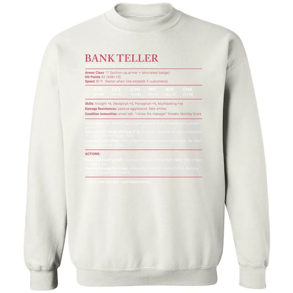 Bank Teller Stats Classic Unisex Sweatshirt - White - 12