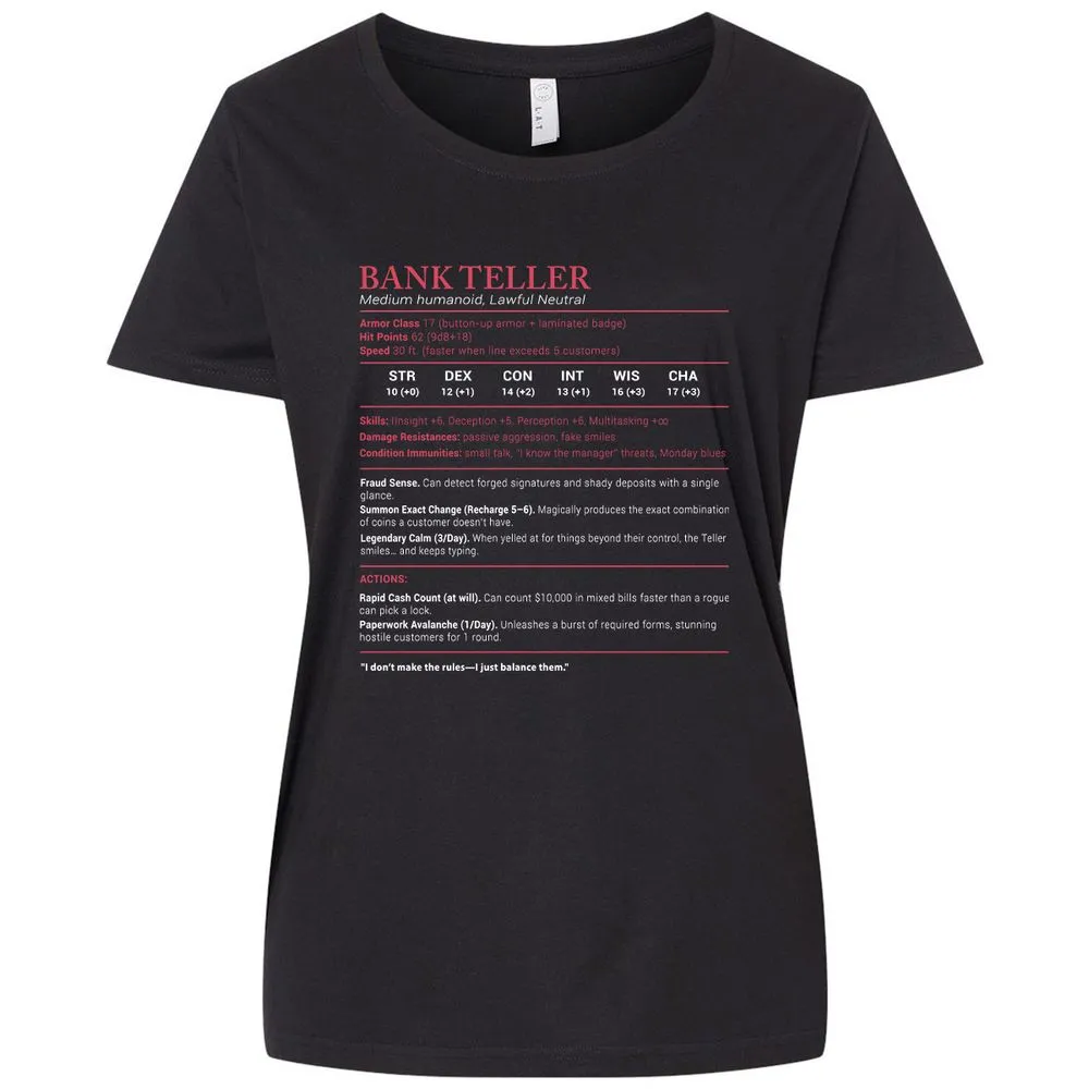 Bank Teller Stats Ladies Curvy Jersey