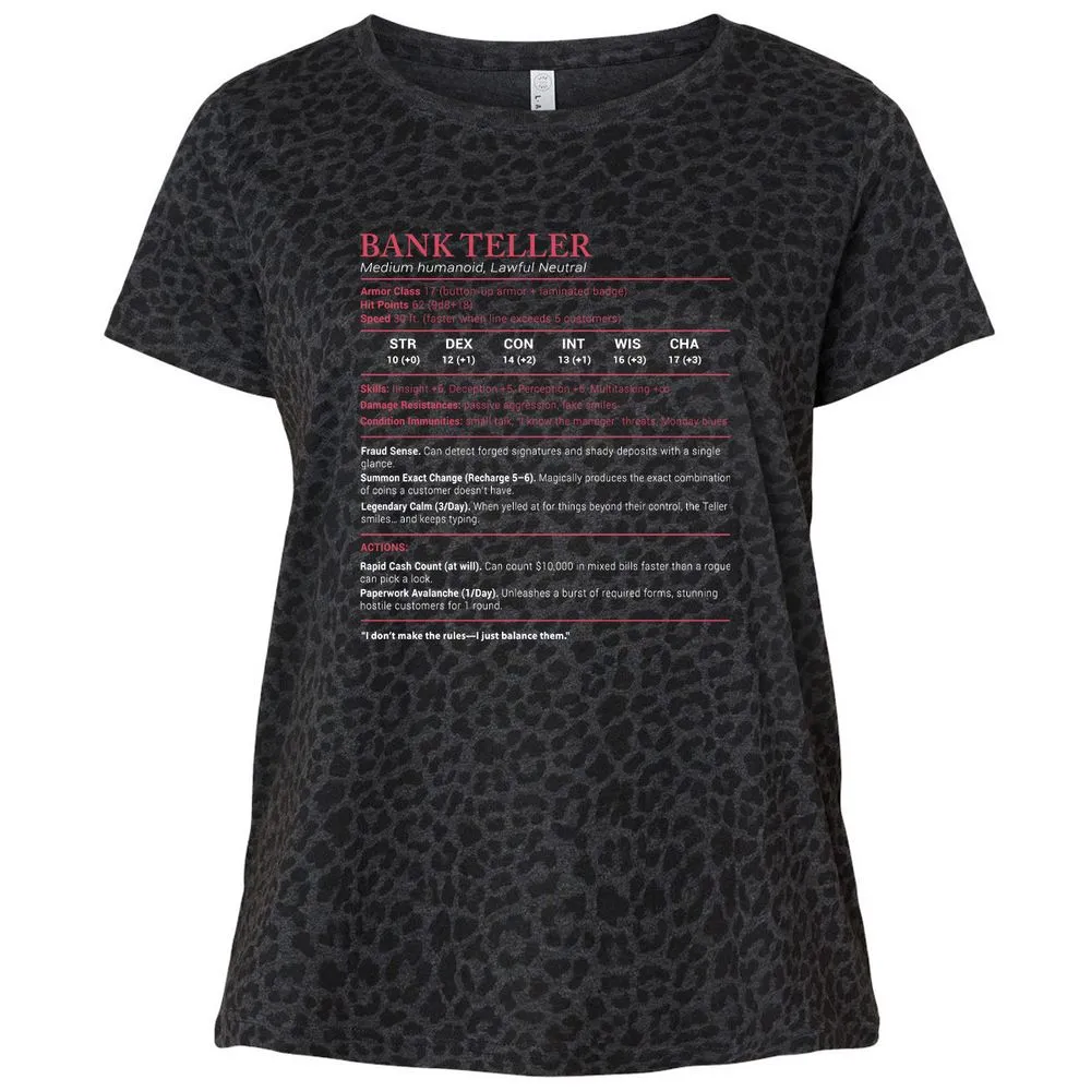 Bank Teller Stats Ladies Curvy Jersey - Black Leopard - 11