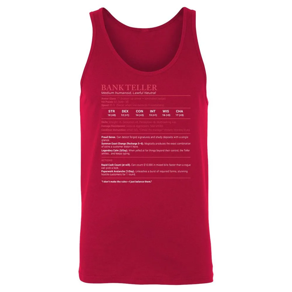 Bank Teller Stats Unisex Jersey Tank - Red - 11