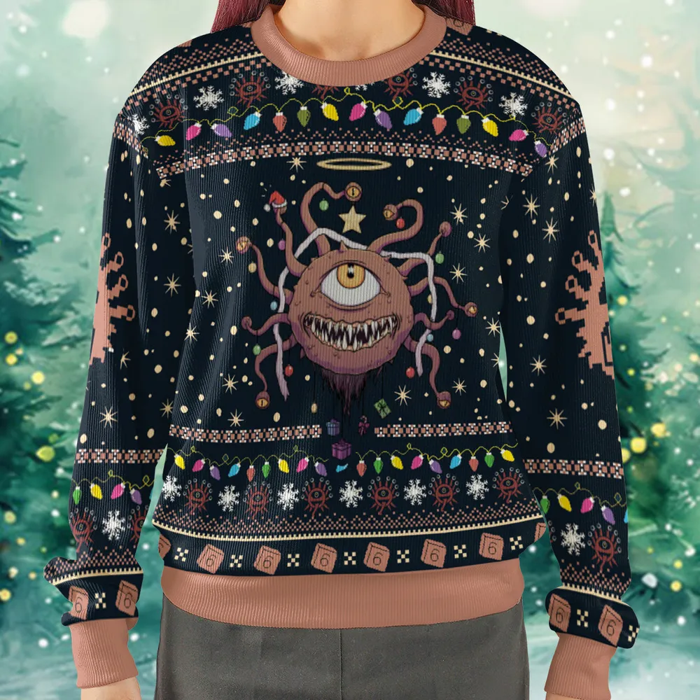 3. Beholder Decoration Ugly Christmas Sweatshirt