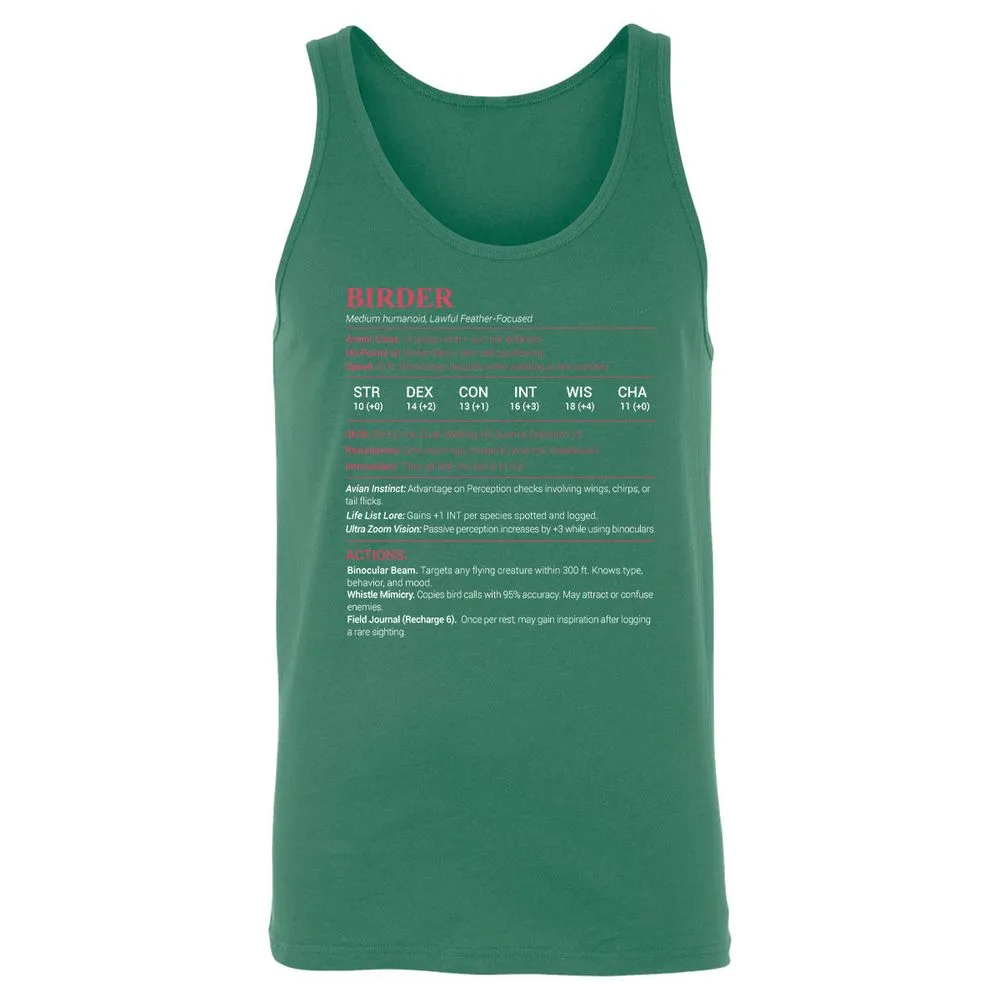 Birder Stats Unisex Jersey Tank - Kelly - 9