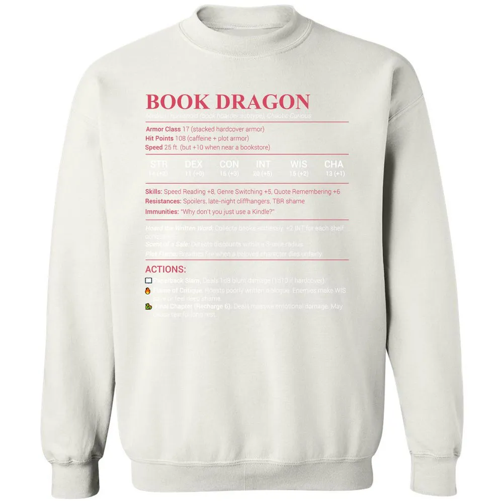Book Dragon Stats Classic Unisex Sweatshirt - White - 12