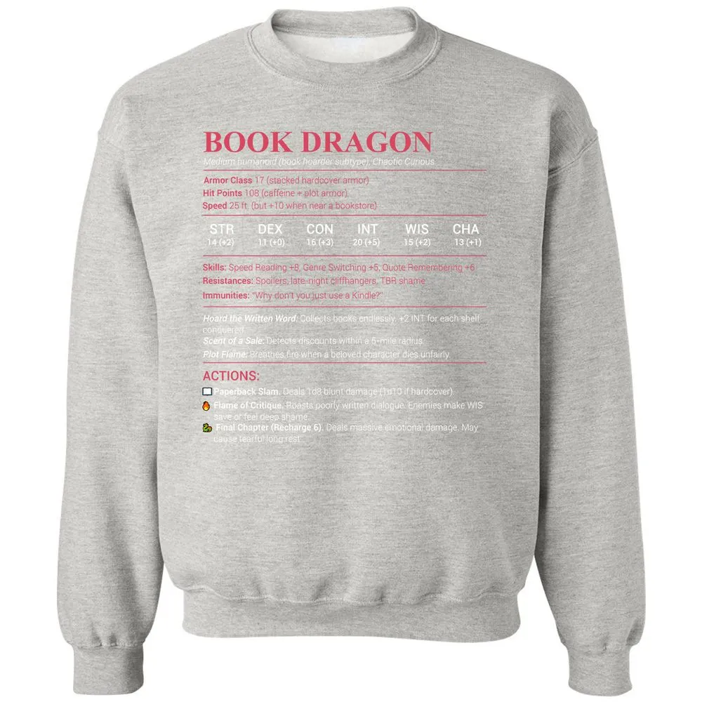 Book Dragon Stats Classic Unisex Sweatshirt - Ash - 8