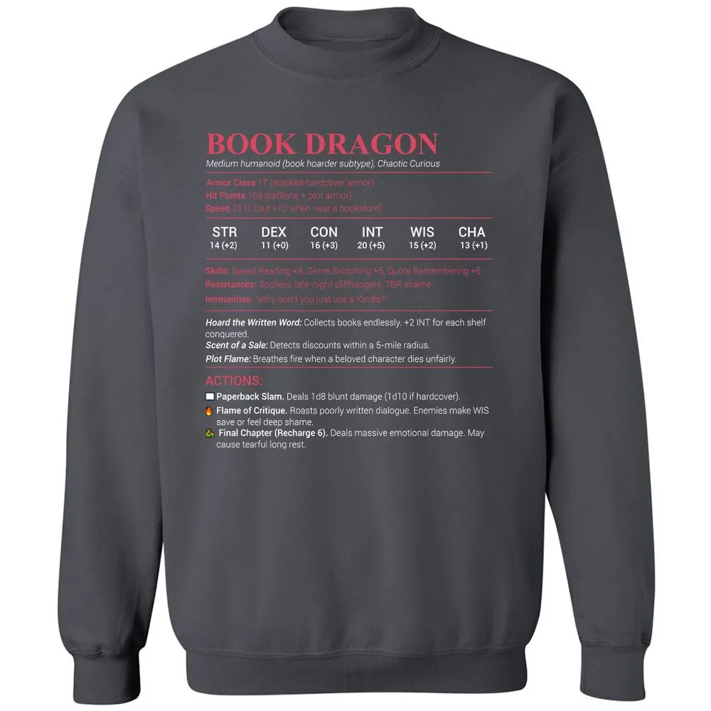 Book Dragon Stats Classic Unisex Sweatshirt - Charcoal - 7