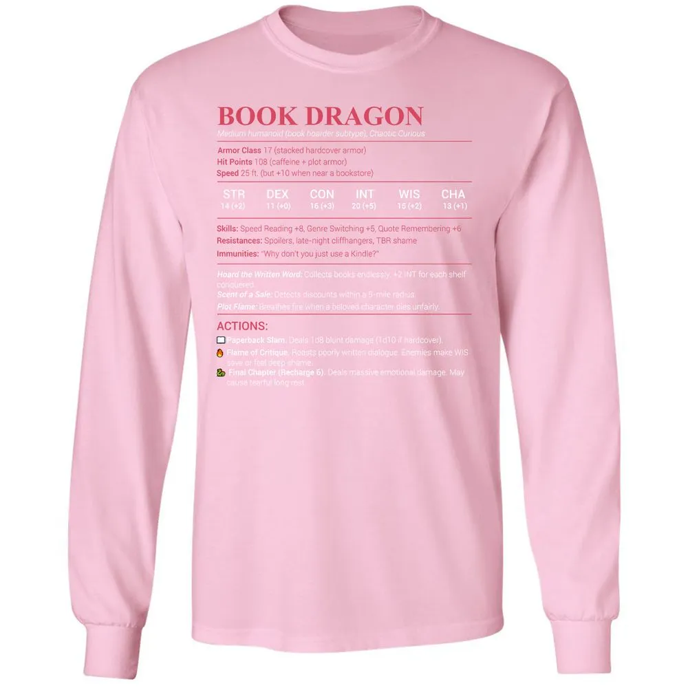 Book Dragon Stats Long Sleeve T-Shirt - Black - 1