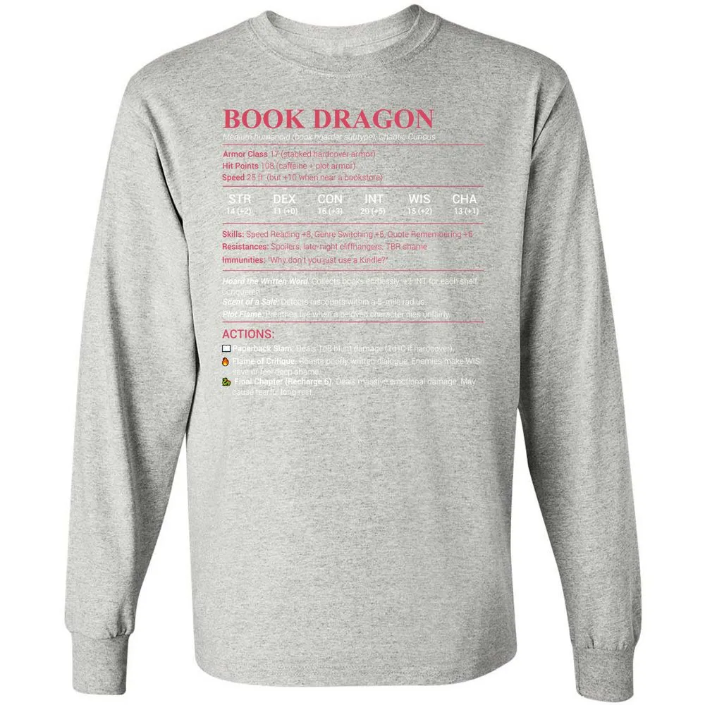 Book Dragon Stats Long Sleeve T-Shirt - Ash - 7