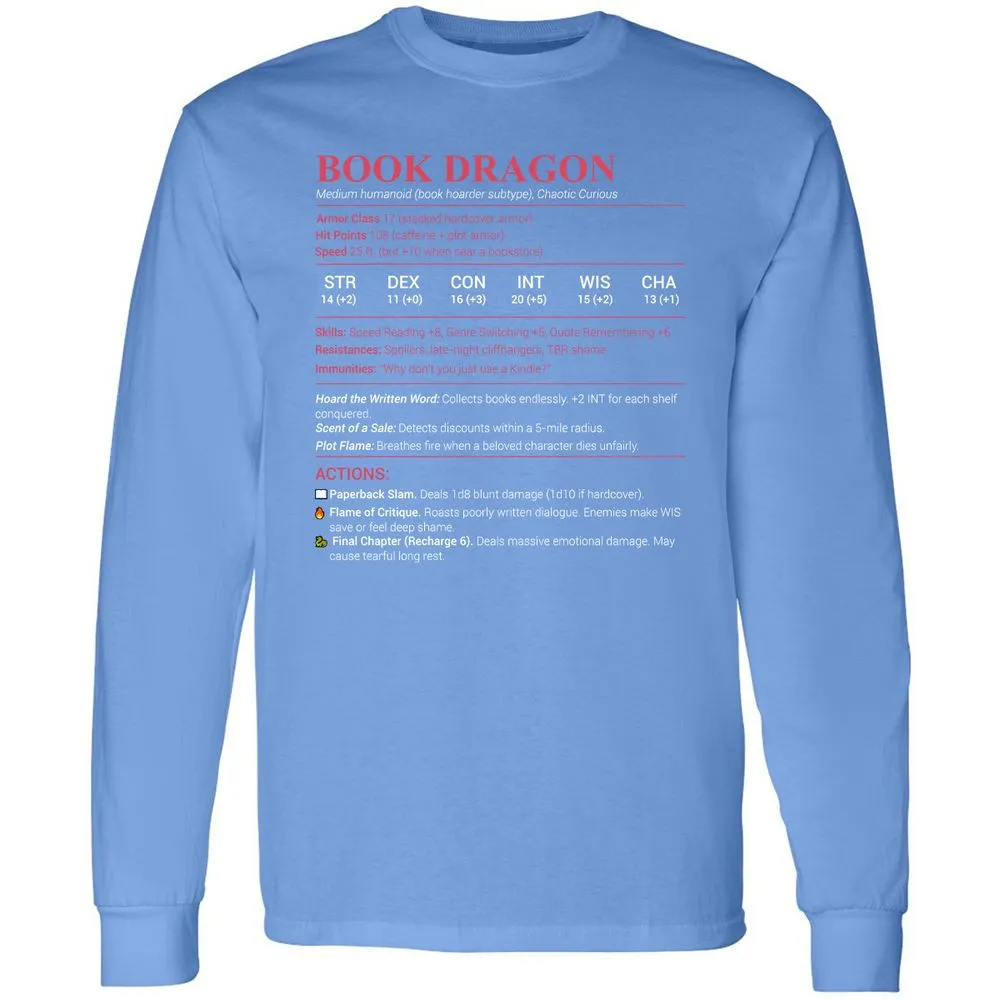 Book Dragon Stats Long Sleeve T-Shirt - Carolina Blue - 12