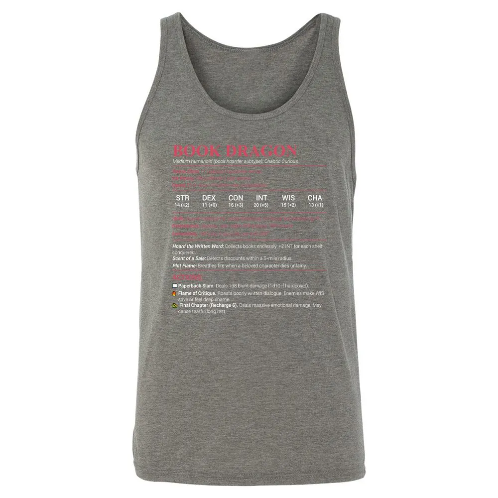 Book Dragon Stats Unisex Jersey Tank - Grey Triblend - 8