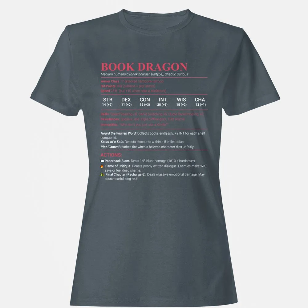 Book Dragon Stats Women's T-Shirt - Heliconia - 6