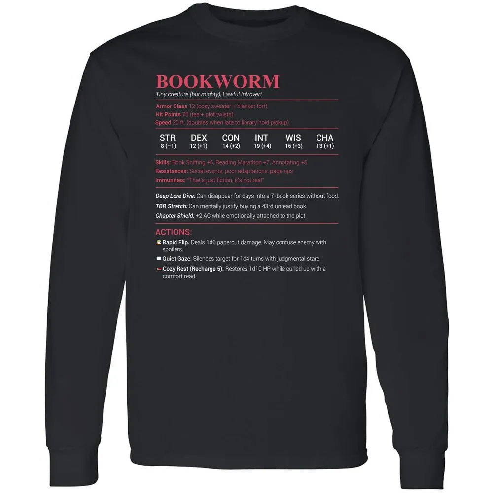 Bookworm Stats Long Sleeve T-Shirt - Black - 1