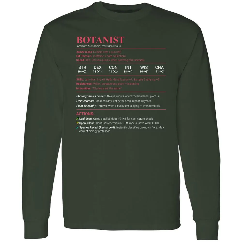 Botanist Stats Long Sleeve T-Shirt - Black - 1