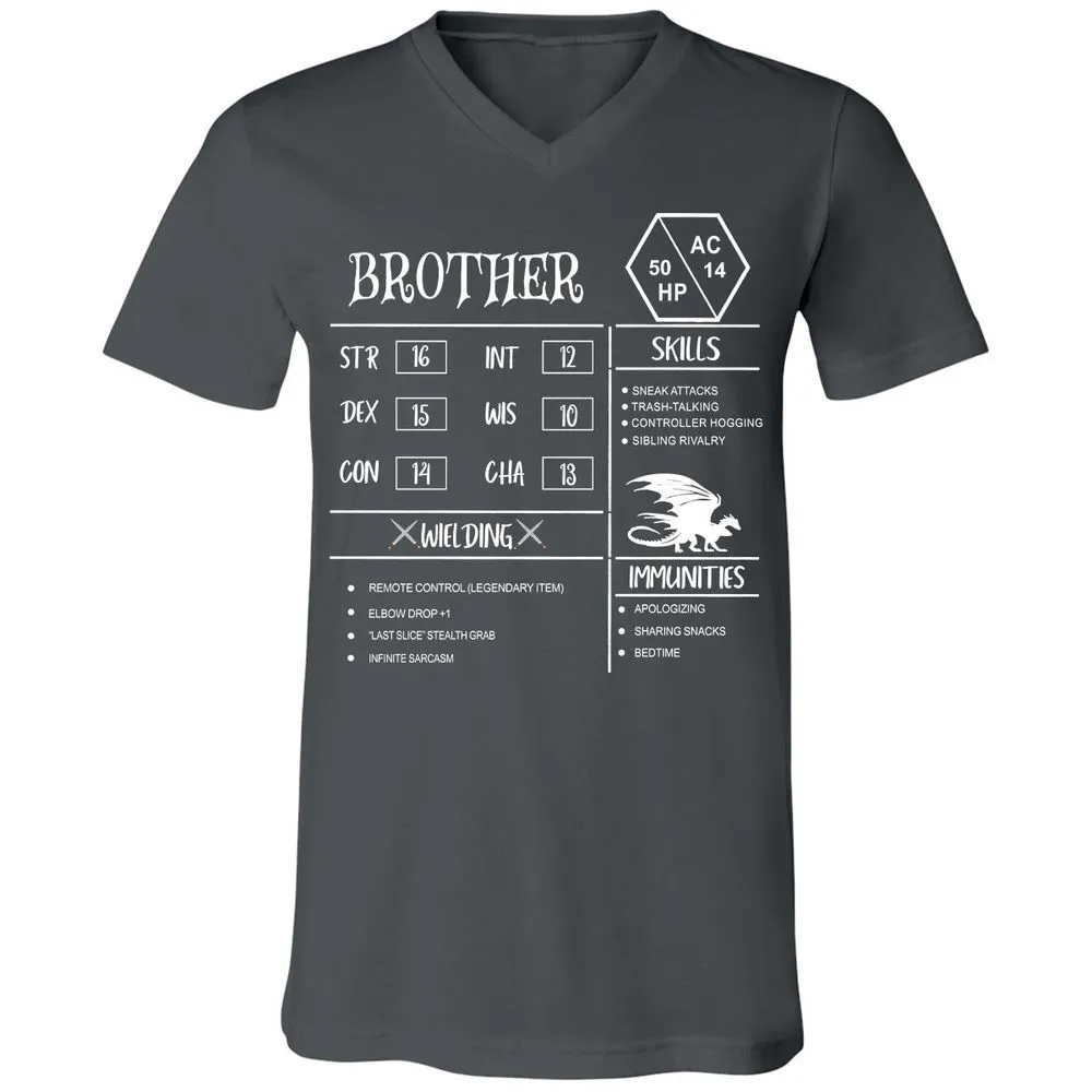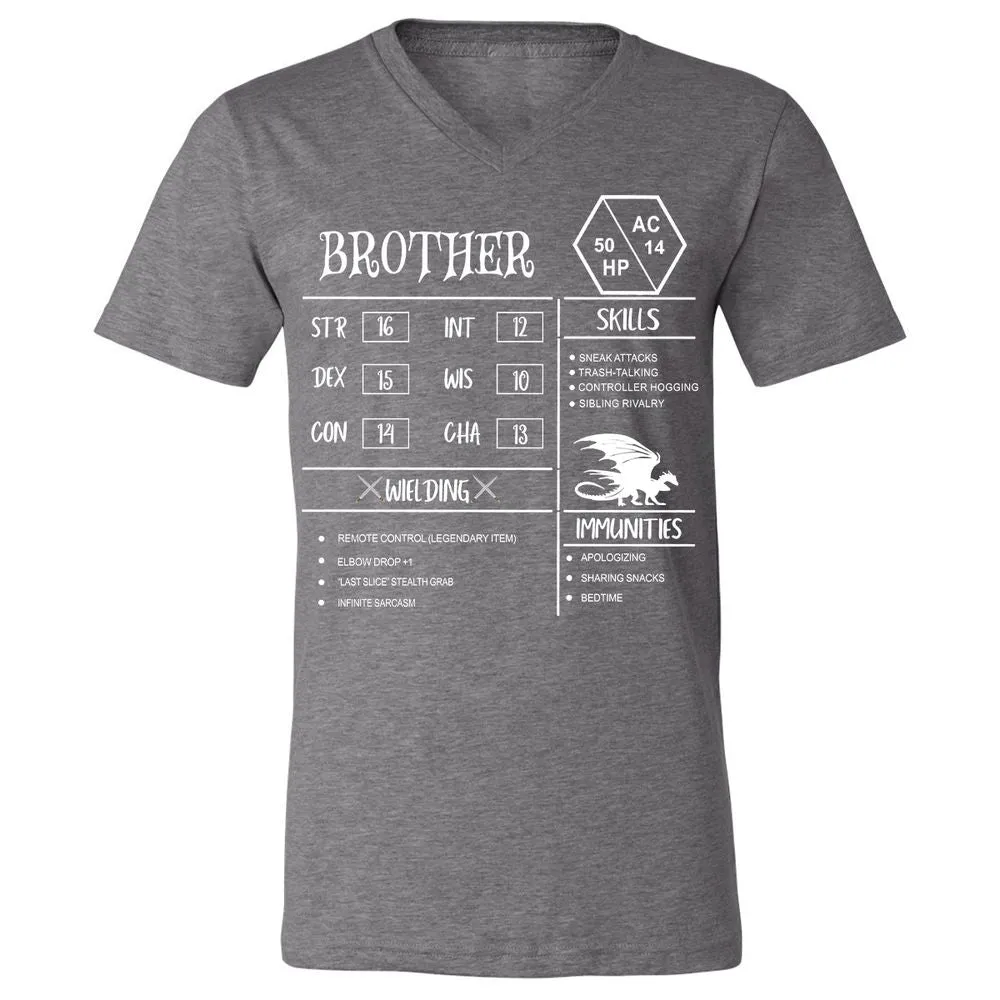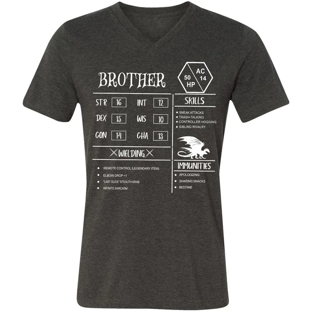 Brother Stats Unisex V-Neck T-Shirt - Dark Grey Heather - 8