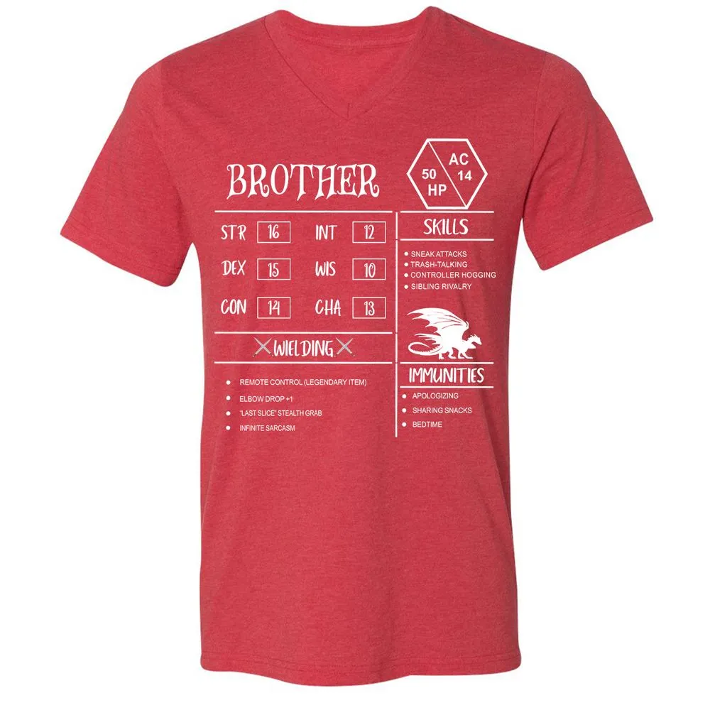 Brother Stats Unisex V-Neck T-Shirt - Heather Red - 16
