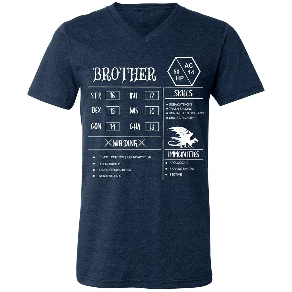 Brother Stats Unisex V-Neck T-Shirt - Heather Navy - 15