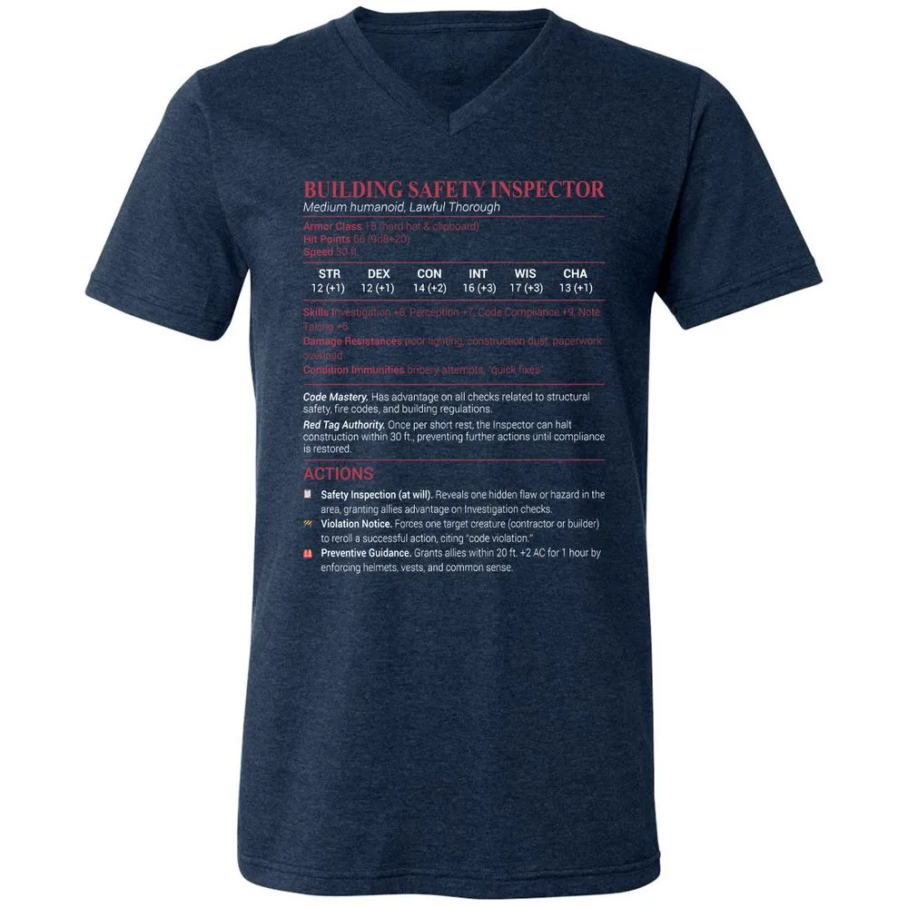 Building Safety Inspector Unisex V-Neck T-Shirt - Heather Navy - 15