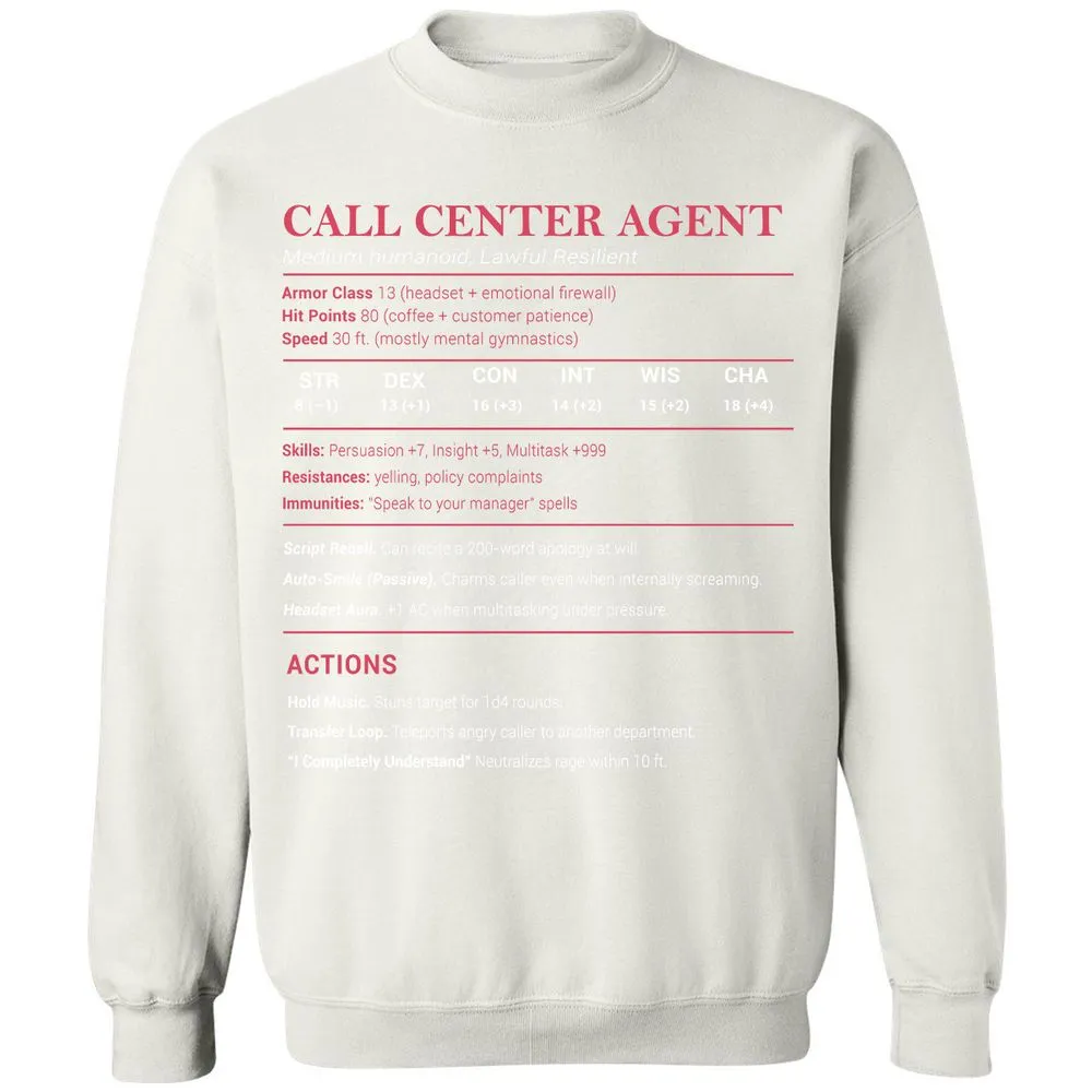 Call Center Agent Stats Classic Unisex Sweatshirt - White - 12