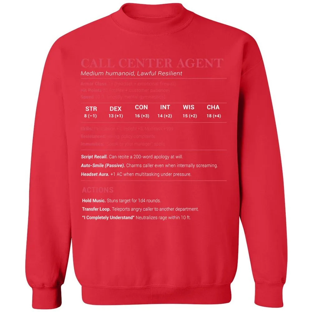 Call Center Agent Stats Classic Unisex Sweatshirt - Red - 5