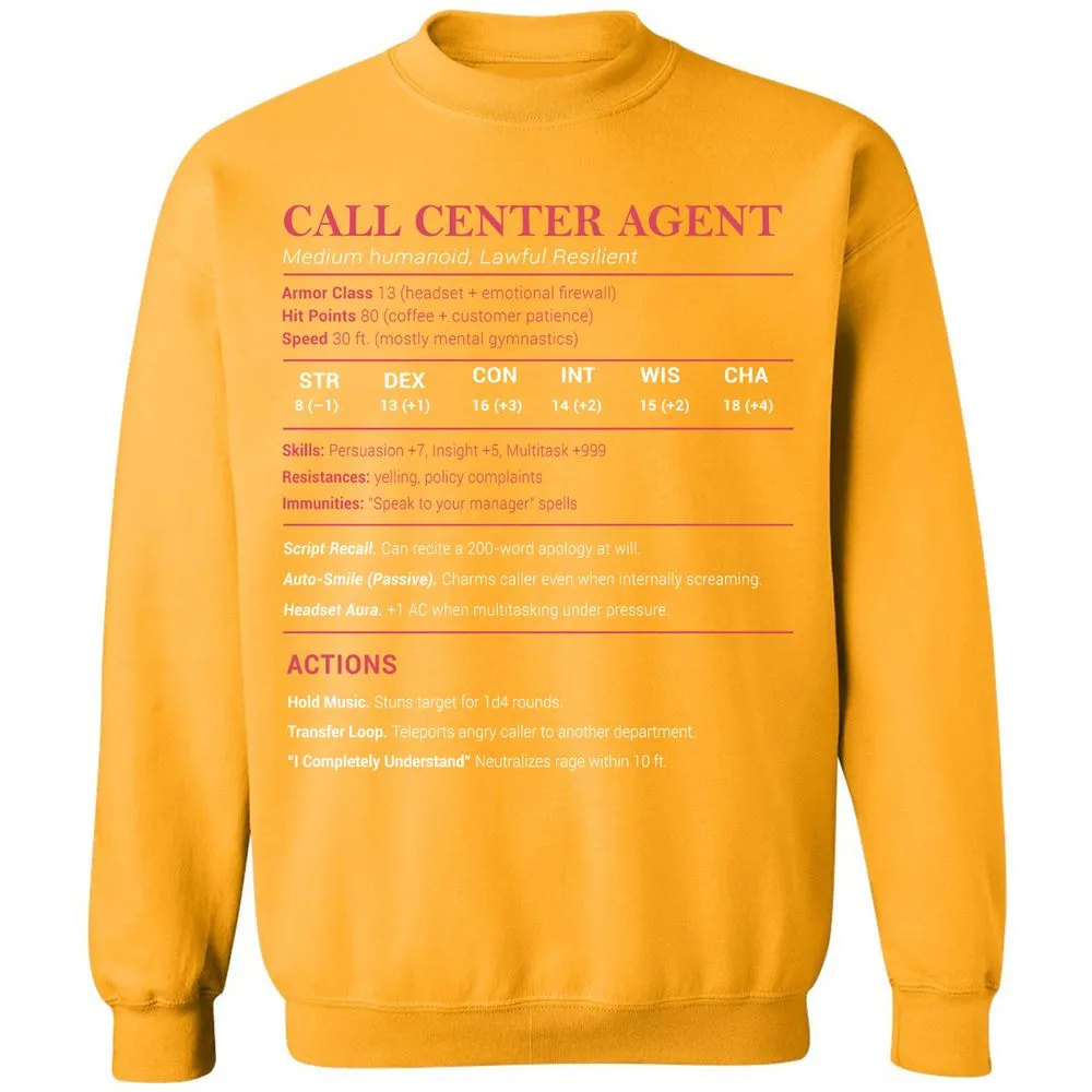 Call Center Agent Stats Classic Unisex Sweatshirt - Gold - 11