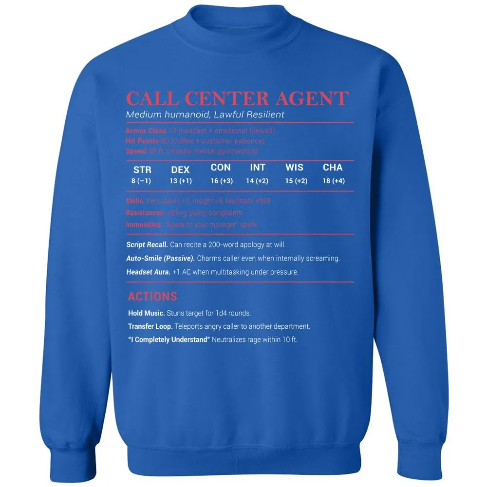 Call Center Agent Stats Classic Unisex Sweatshirt - Royal - 9