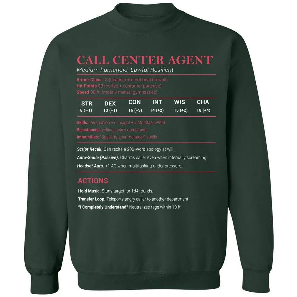 Call Center Agent Stats Classic Unisex Sweatshirt - Forest Green - 4