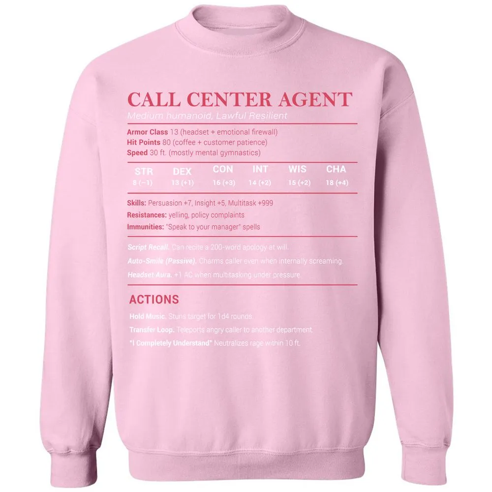 Call Center Agent Stats Classic Unisex Sweatshirt - Light Pink - 3