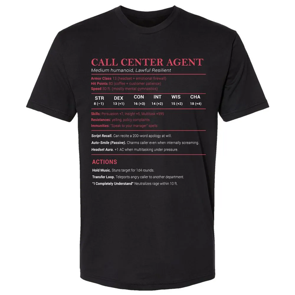 Call Center Agent Stats Premium Unisex T-Shirt - Black - 1