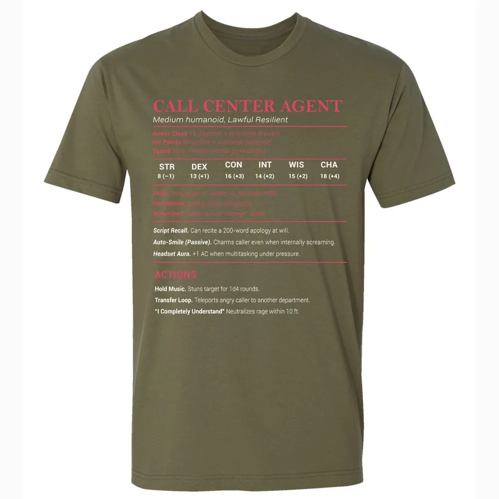 Call Center Agent Stats Premium Unisex T-Shirt - Military Green - 5