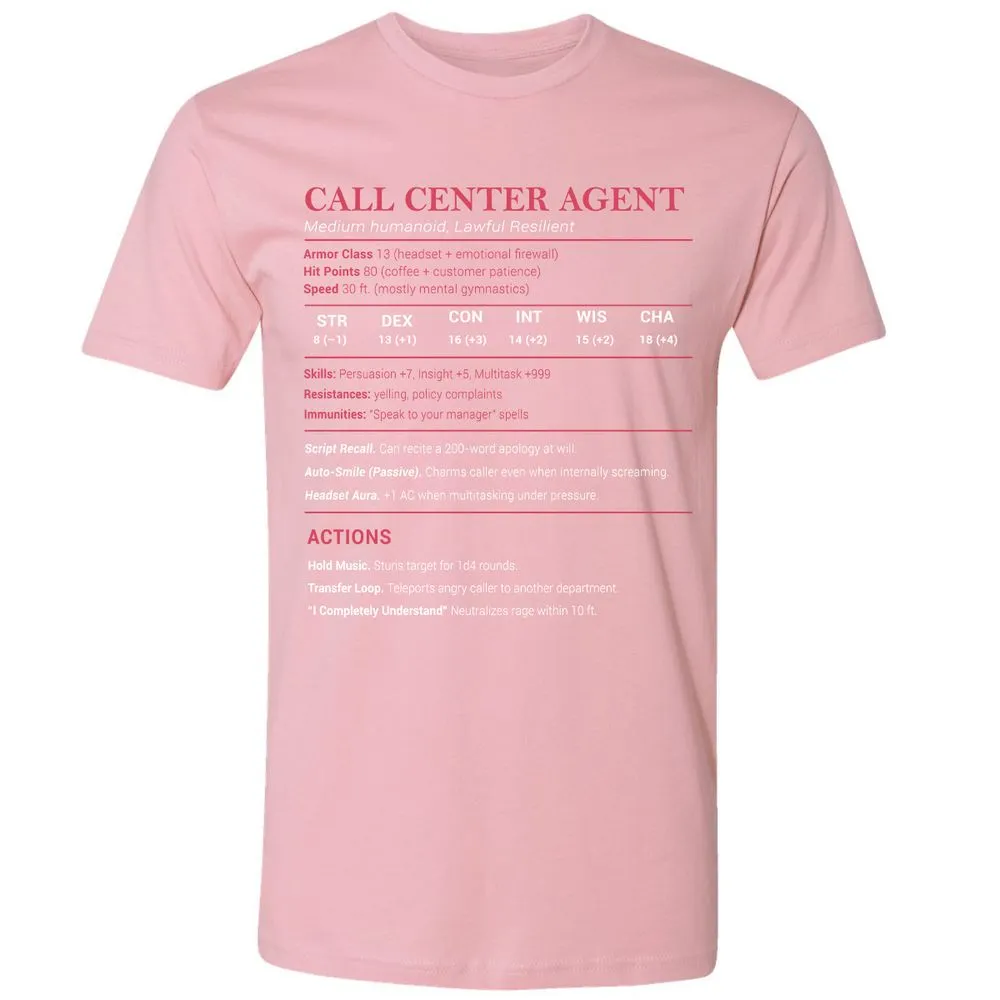 Call Center Agent Stats Premium Unisex T-Shirt - Light Pink - 3