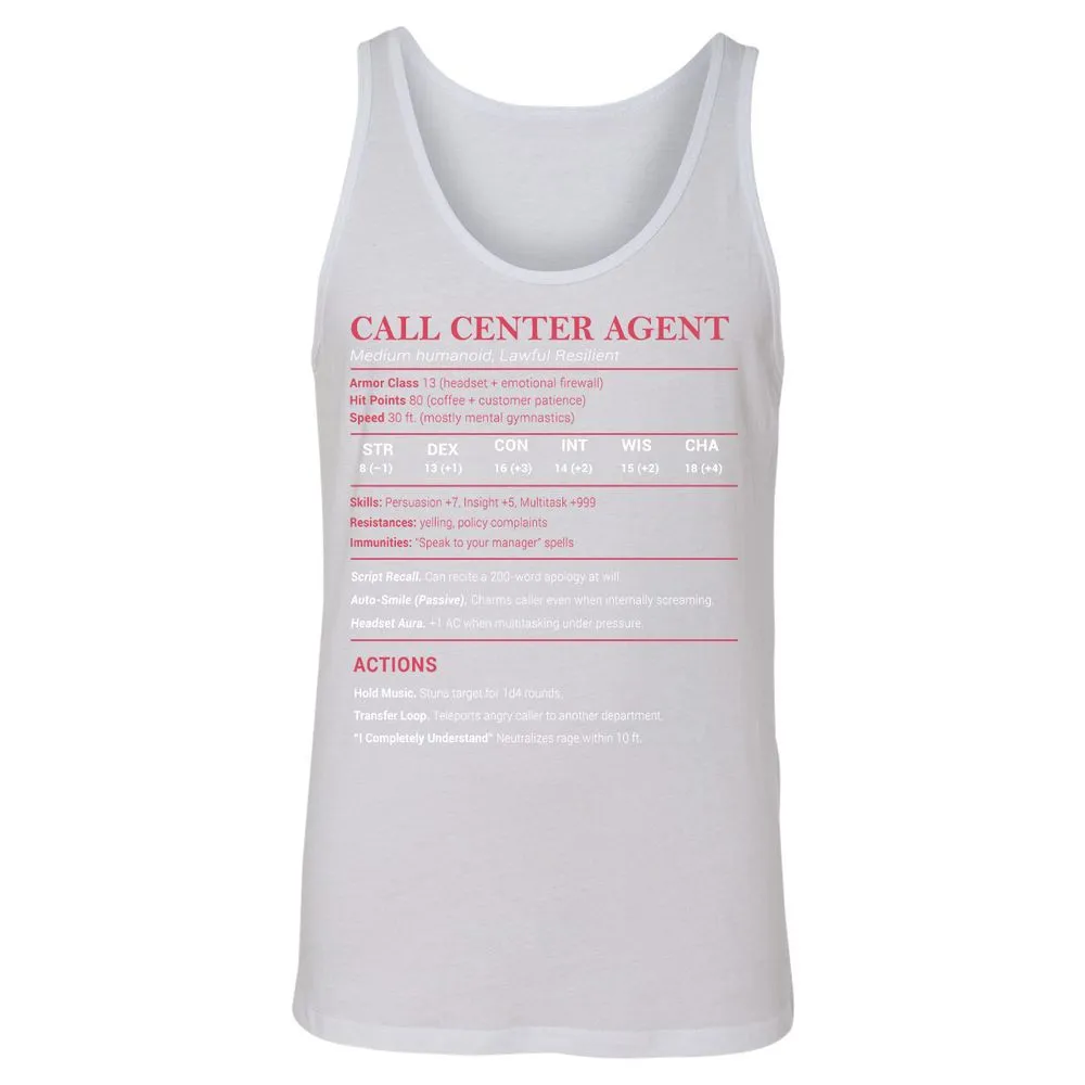Call Center Agent Stats Unisex Jersey Tank - White - 14