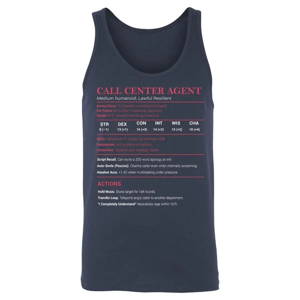 Call Center Agent Stats Unisex Jersey Tank - Navy - 2