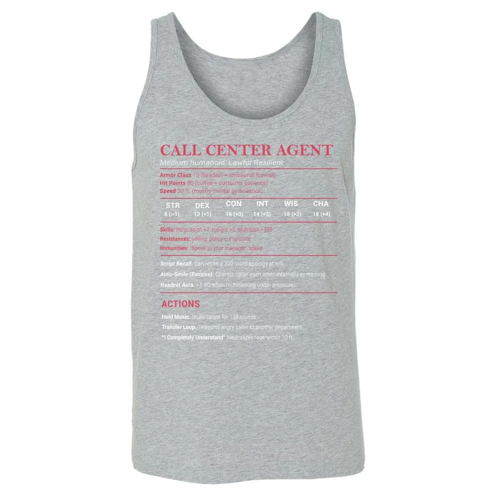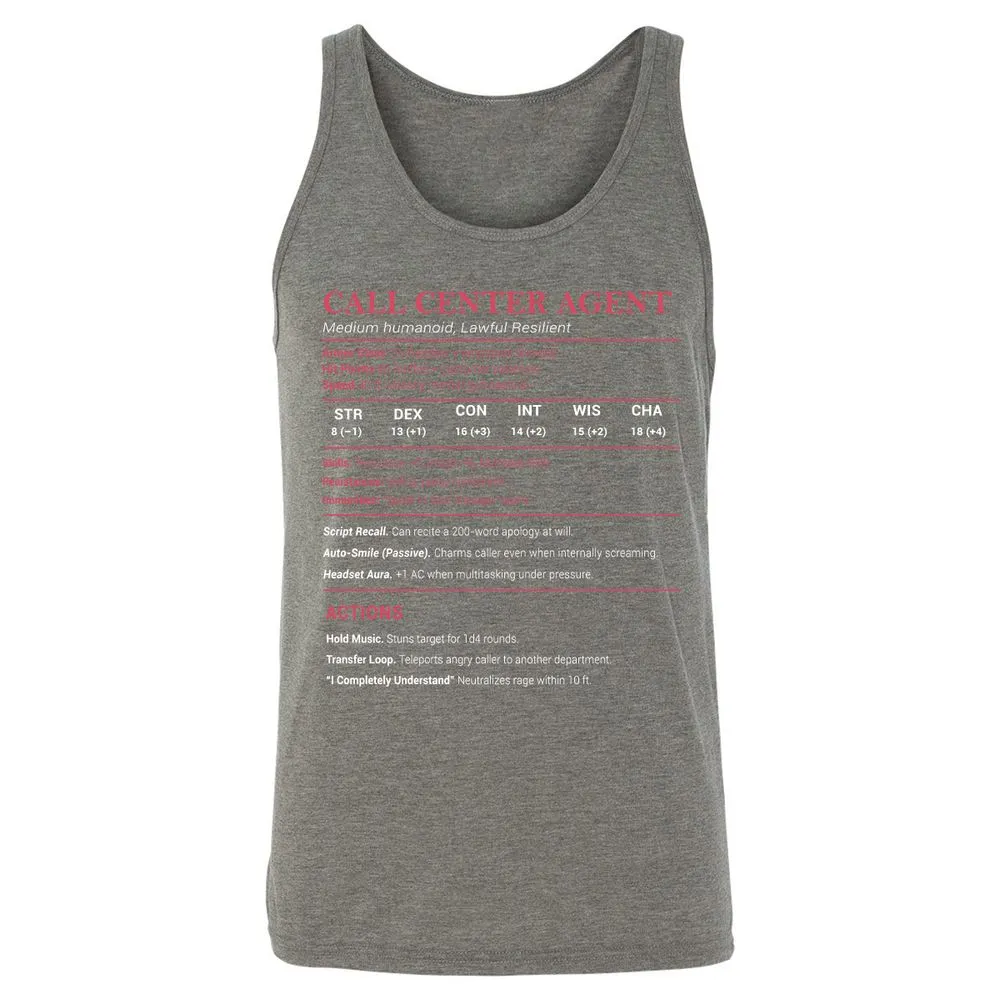 Call Center Agent Stats Unisex Jersey Tank - Grey Triblend - 8