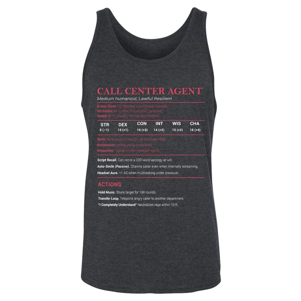 Call Center Agent Stats Unisex Jersey Tank - Dark Grey Heather - 6