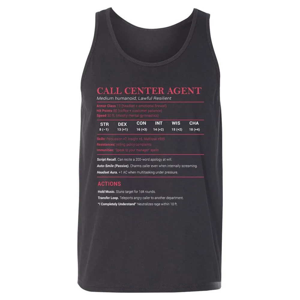 Call Center Agent Stats Unisex Jersey Tank - Dark Grey - 7