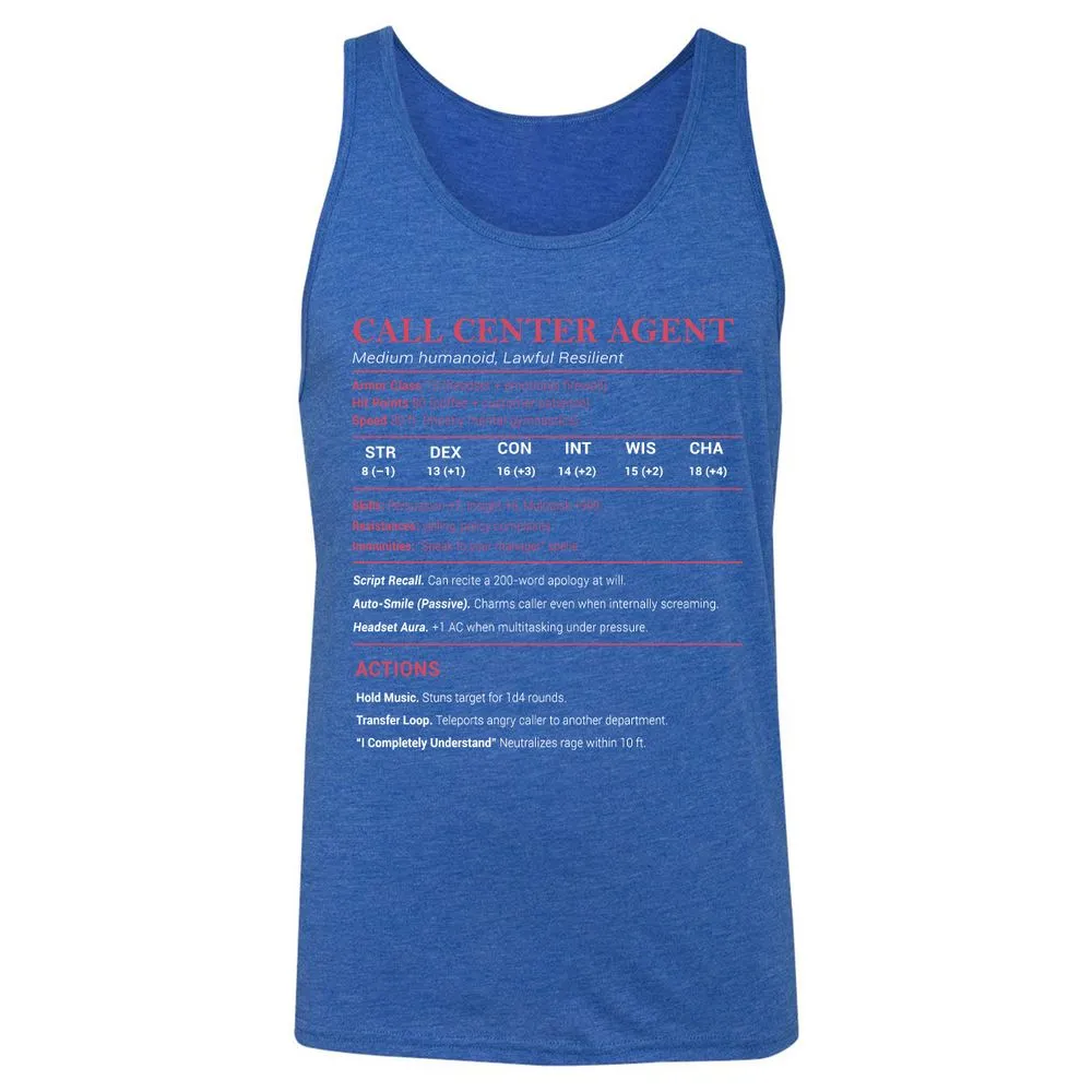 Call Center Agent Stats Unisex Jersey Tank - True Royal Triblend - 12