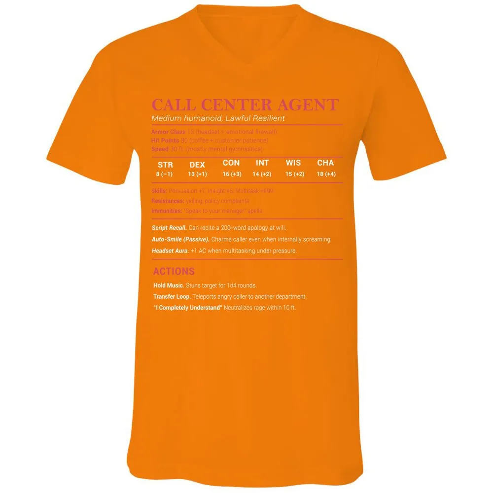 Call Center Agent Stats Unisex V-Neck T-Shirt - Orange - 11
