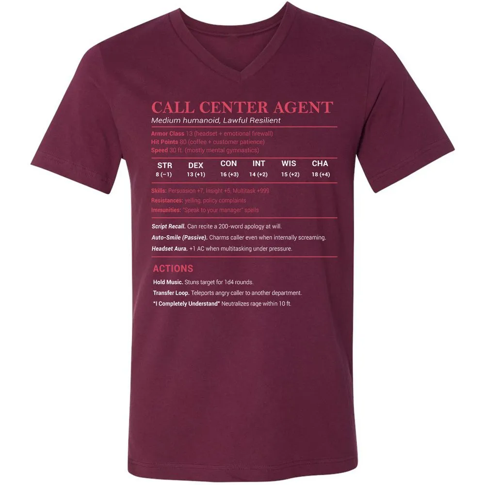 Call Center Agent Stats Unisex V-Neck T-Shirt - Maroon - 6