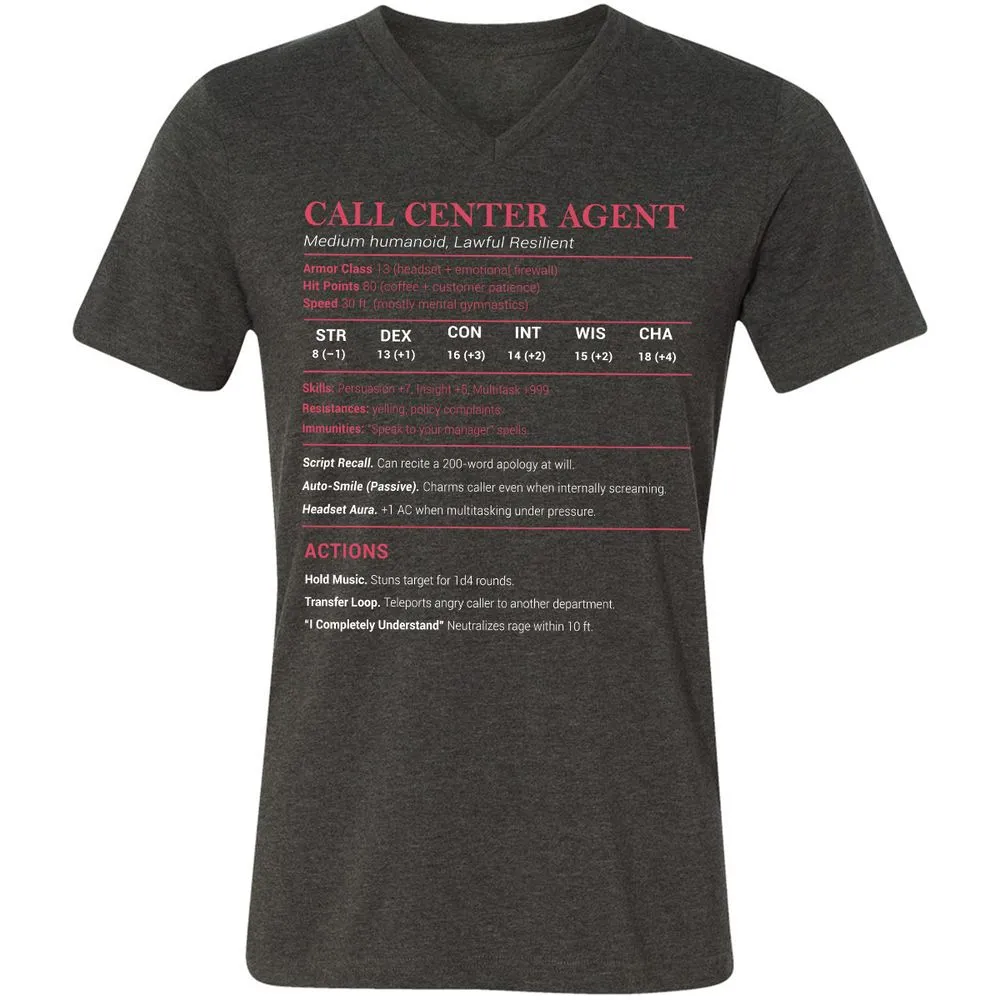 Call Center Agent Stats Unisex V-Neck T-Shirt - Asphalt - 12