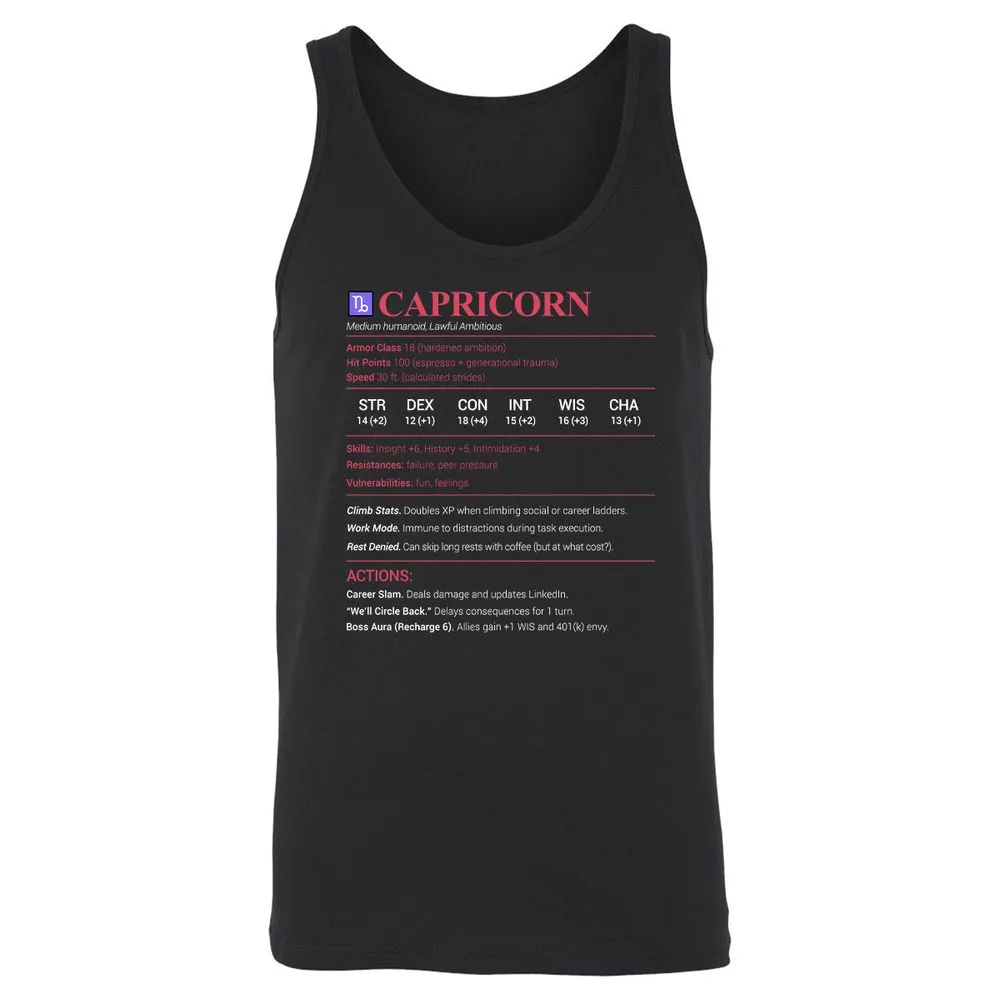 Capricorn Stats Unisex Jersey Tank - Black - 1
