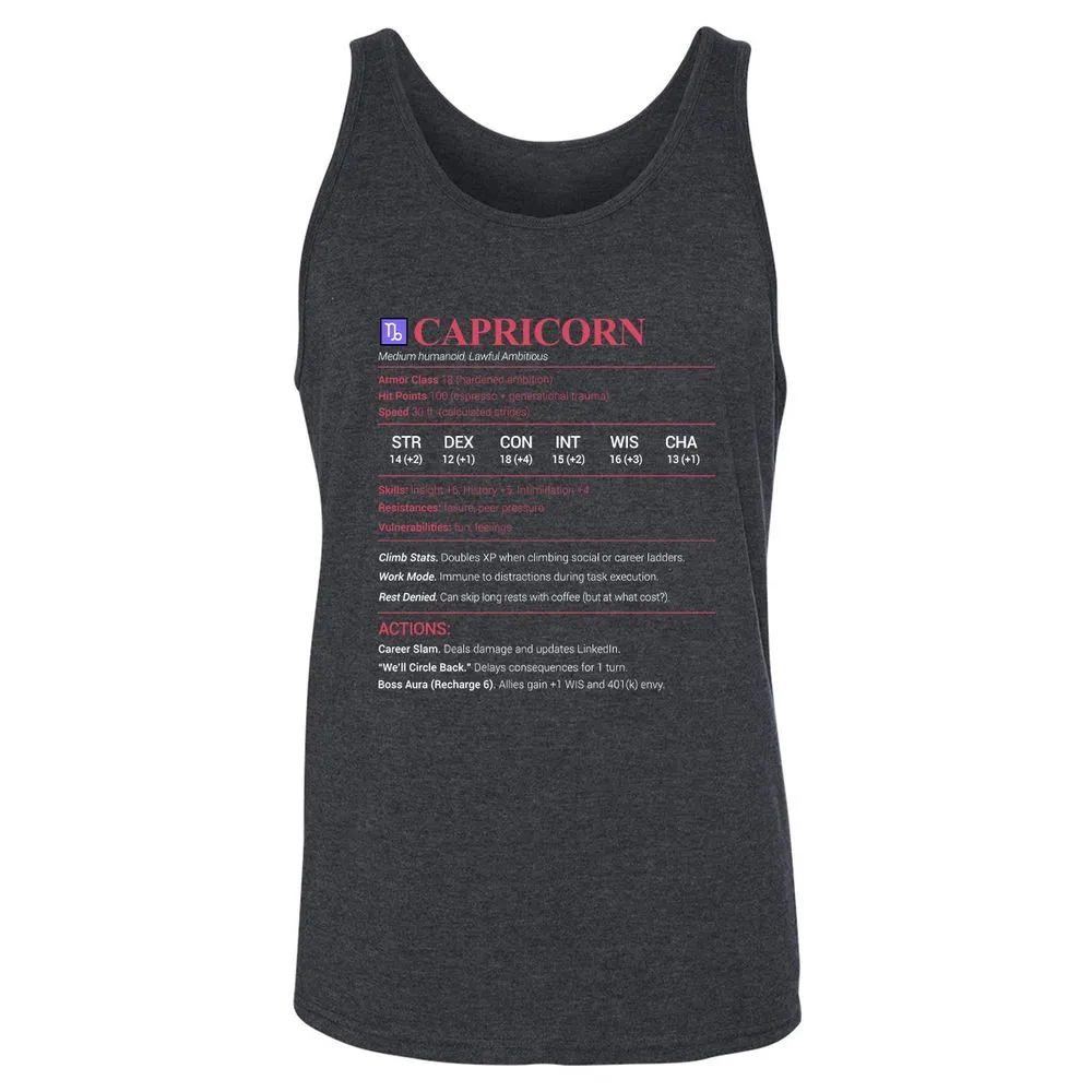 Capricorn Stats Unisex Jersey Tank - Dark Grey - 7