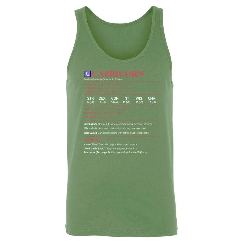 Capricorn Stats Unisex Jersey Tank - Leaf - 10