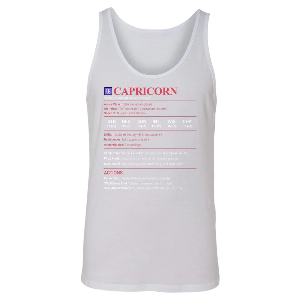 Capricorn Stats Unisex Jersey Tank - White - 14