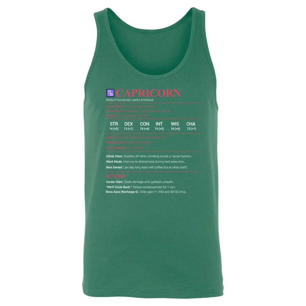 Capricorn Stats Unisex Jersey Tank - Kelly - 9
