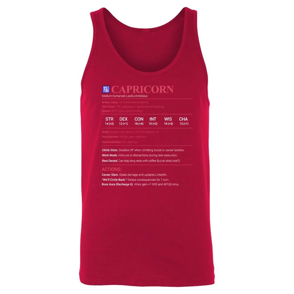 Capricorn Stats Unisex Jersey Tank - Red - 11