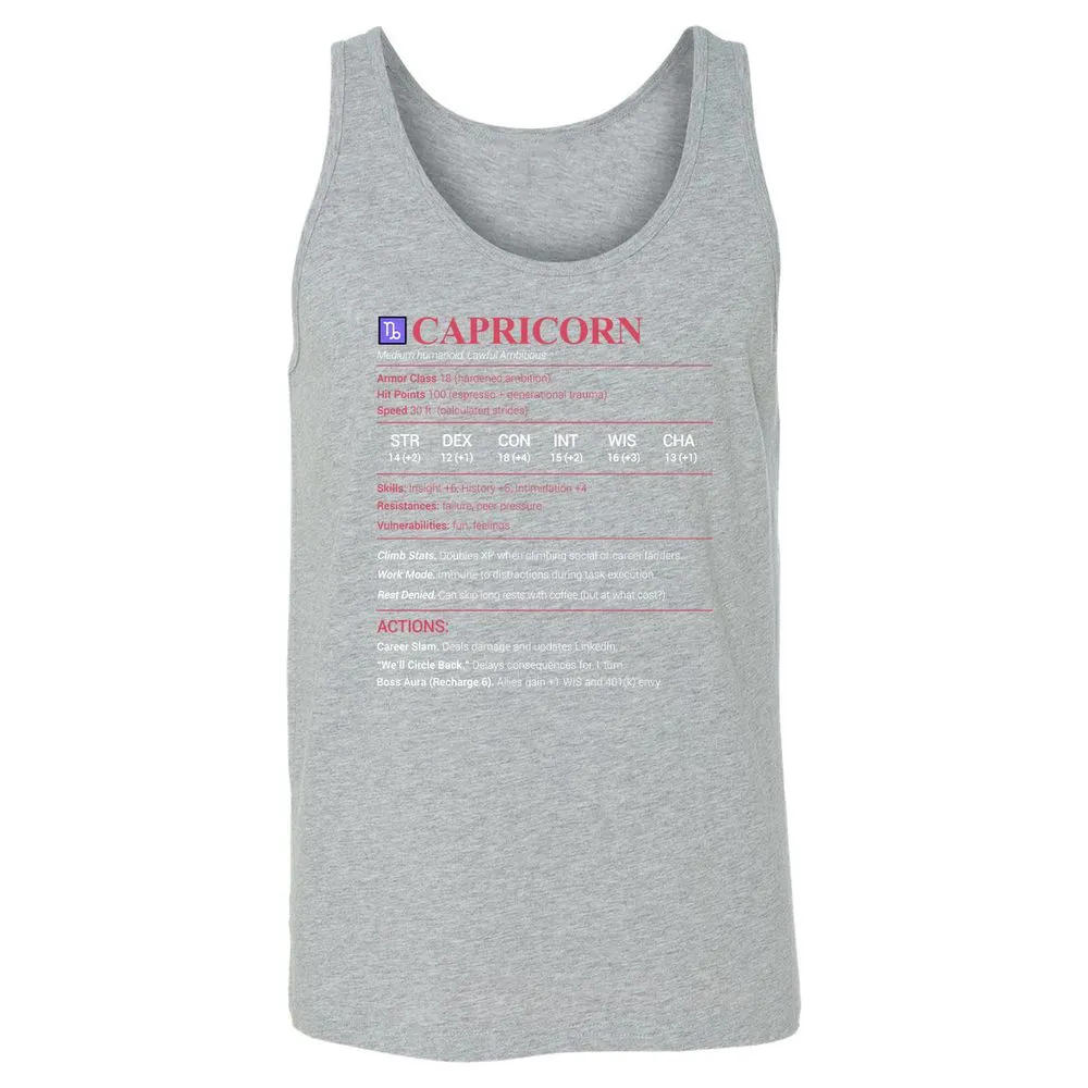 Capricorn Stats Unisex Jersey Tank - Dark Grey Heather - 6