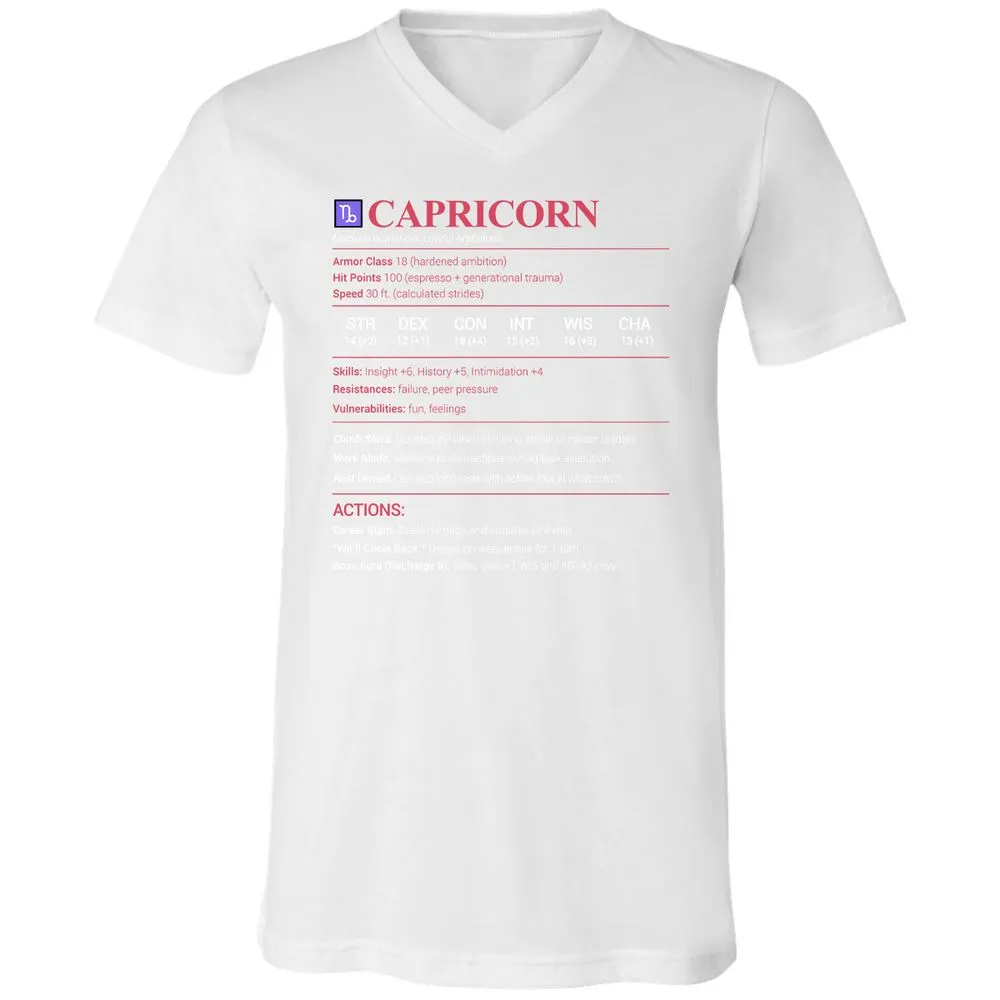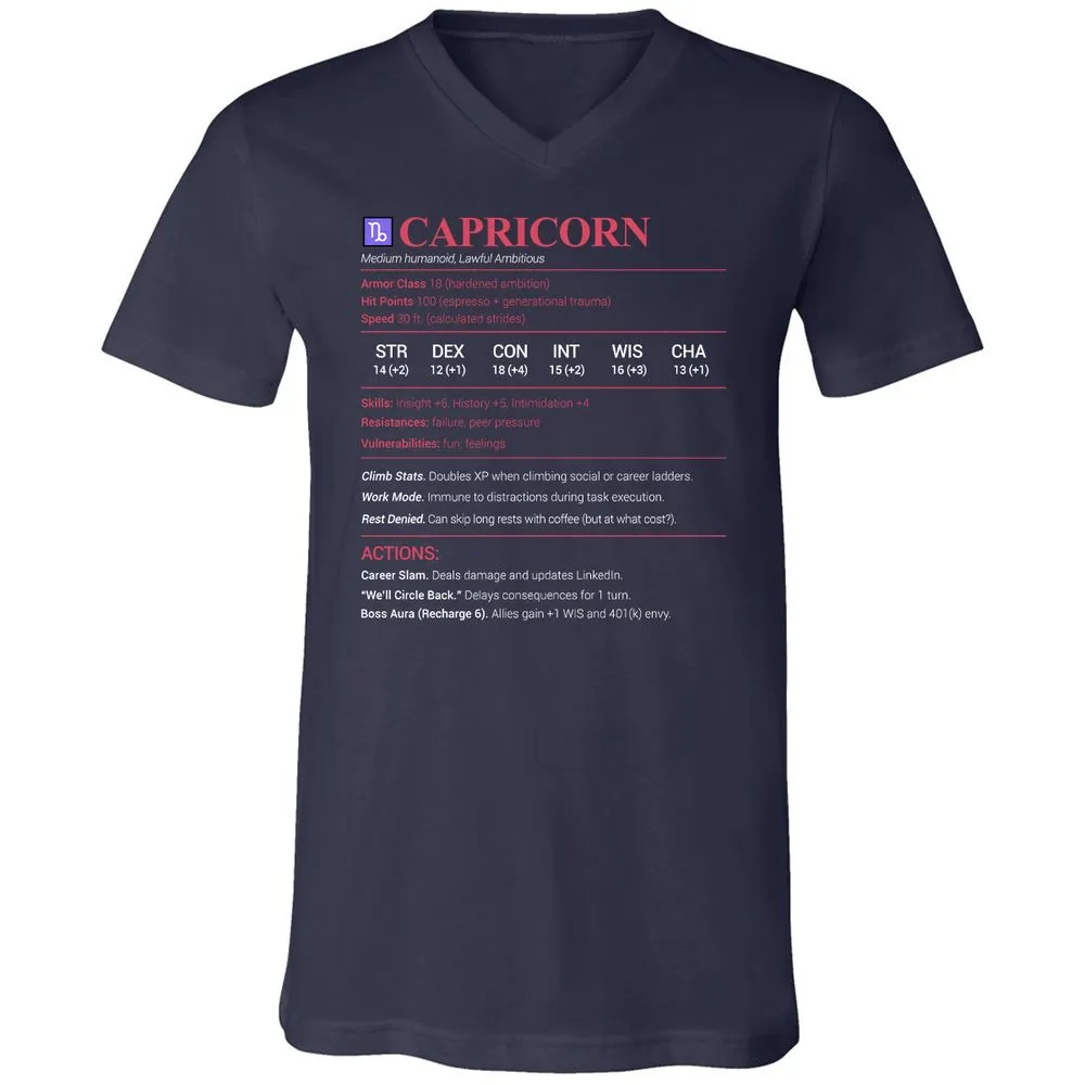Capricorn Stats Unisex V-Neck T-Shirt - Asphalt - 12