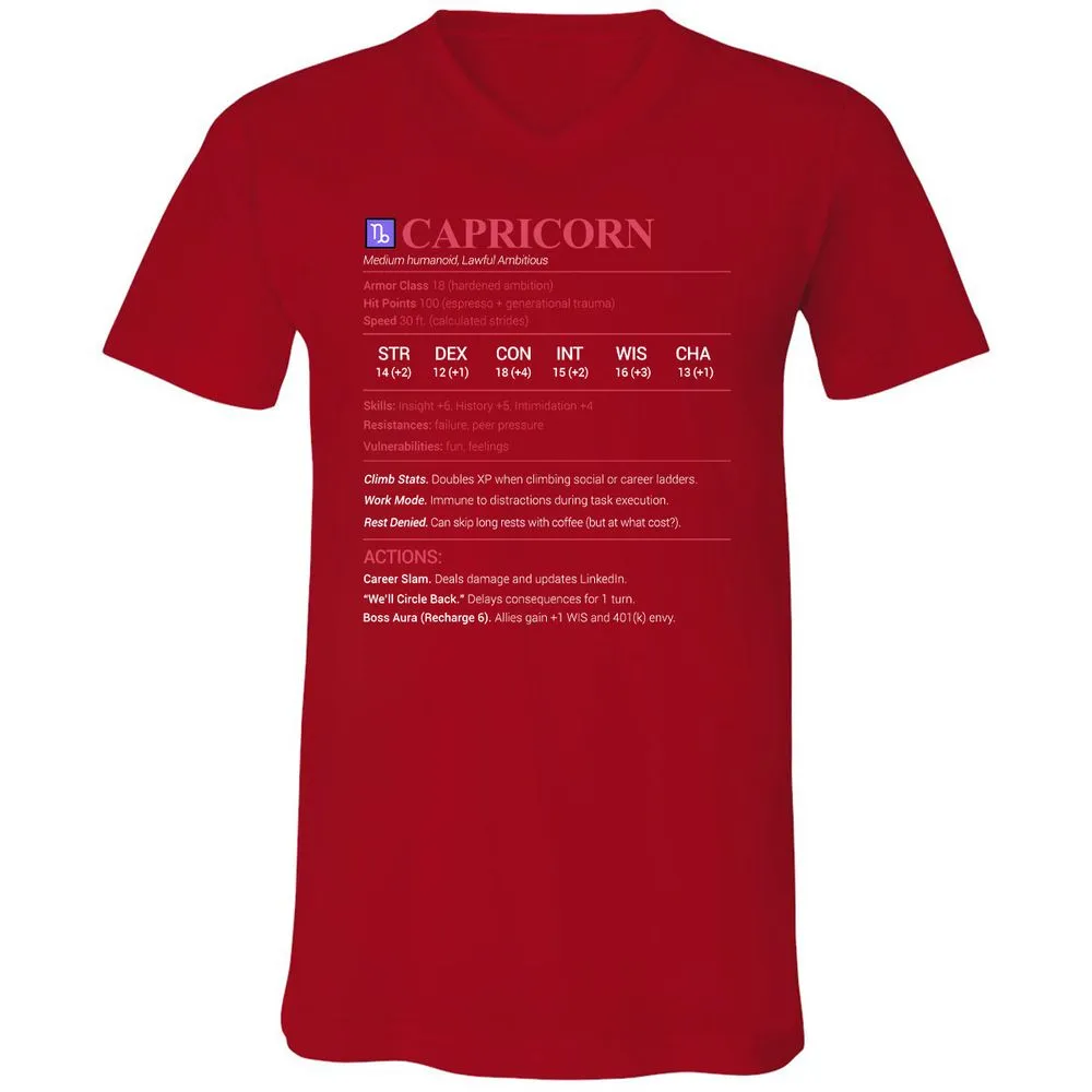 Capricorn Stats Unisex V-Neck T-Shirt - Heather Red - 16
