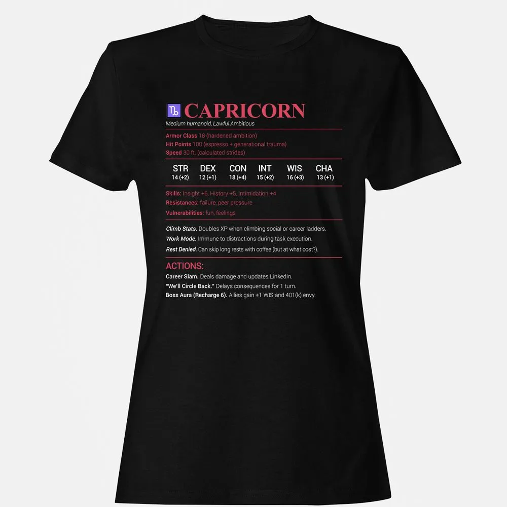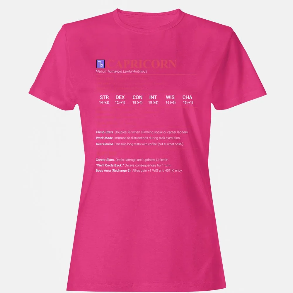 Capricorn Stats Women's T-Shirt - Heliconia - 6