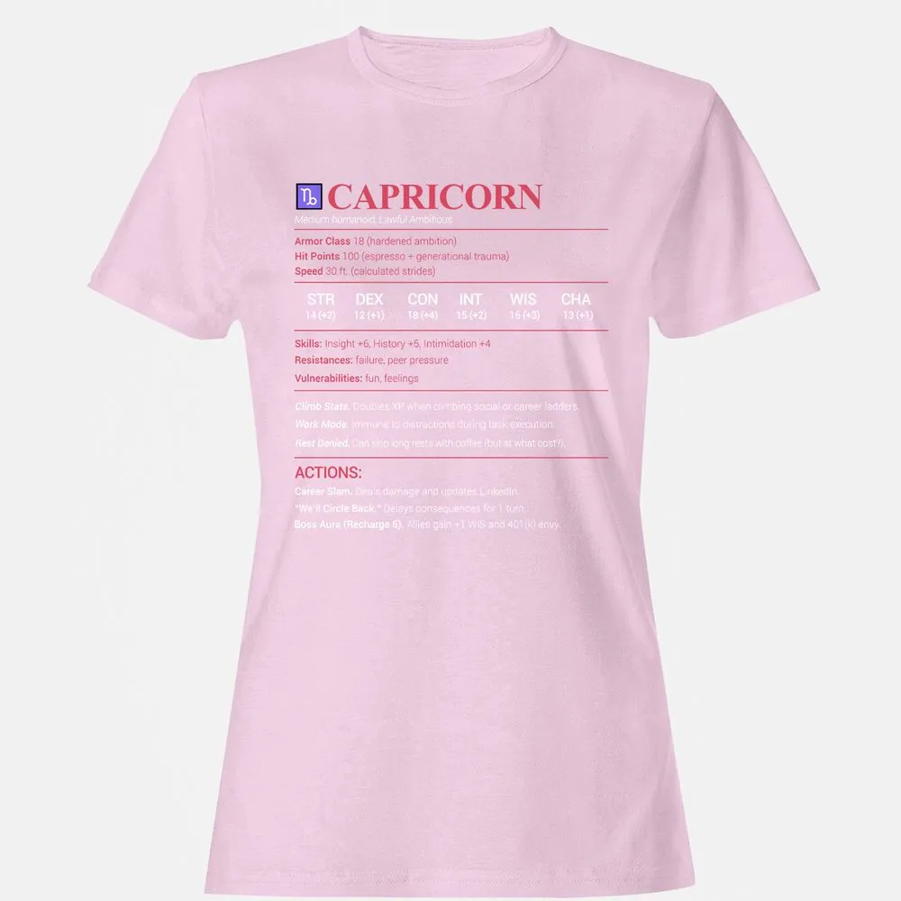 Capricorn Stats Women's T-Shirt - Light Pink - 9